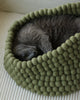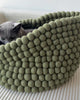 Coco felt ball bed is made from 100% Merino Wool, naturally resistant to odor and stains. These properties are due to the unique characteristics of its fibers, including an antibacterial lanolin coating. We recommend spot cleaning with soap and water if needed. Use a vacuum or lint roller for light cleans.