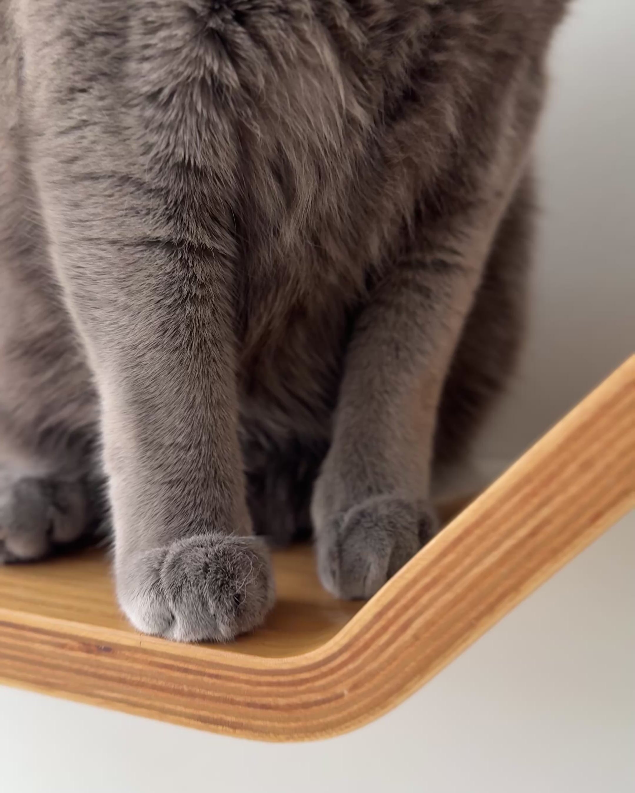 Each shelf can support up to 50 lbs. Strong enough for larger breeds like Maine Coons.